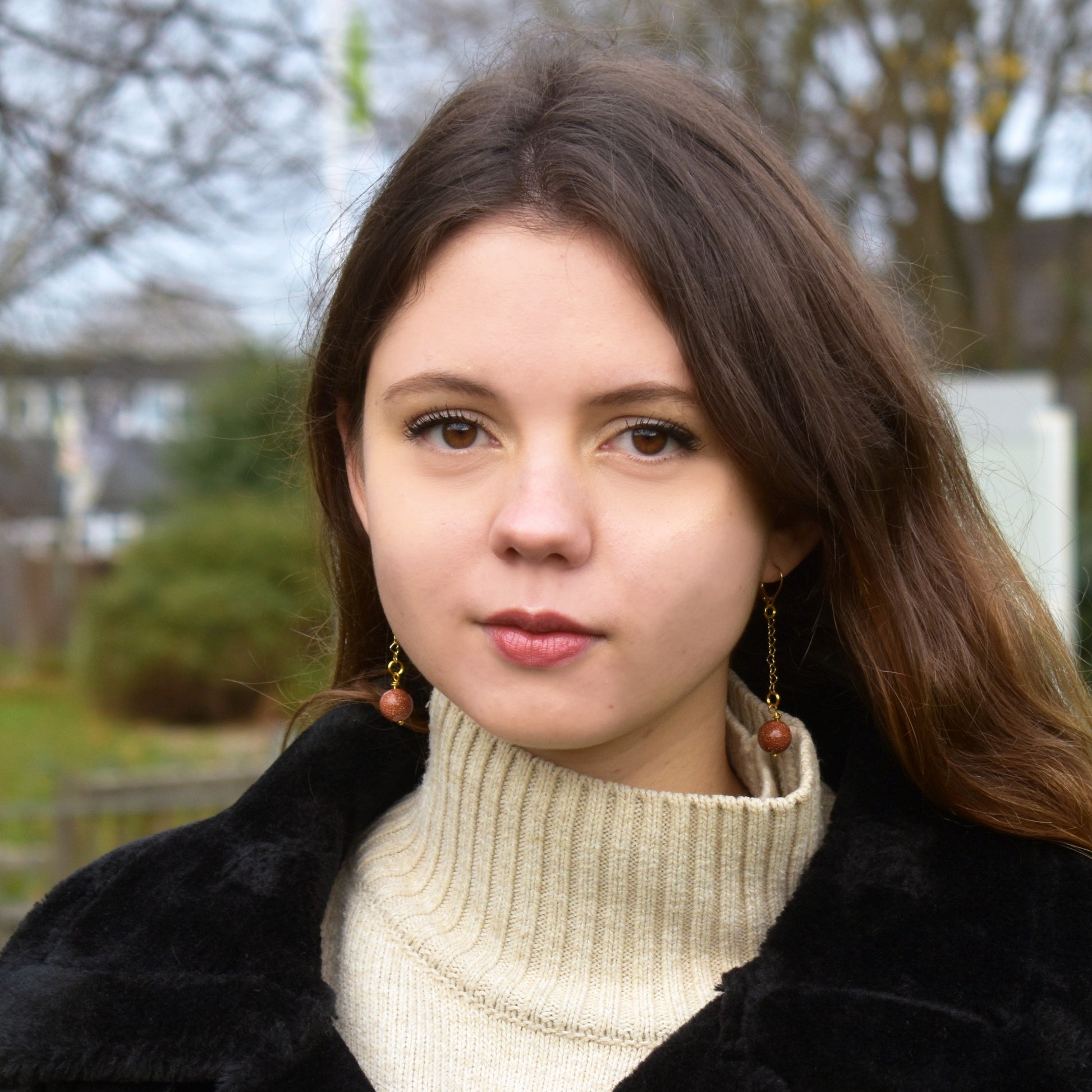 Brown Goldstone and Yellow Gold Vermeil Earrings, Heart Chain Earrings, Bloom Collection | by nlanlaVictory