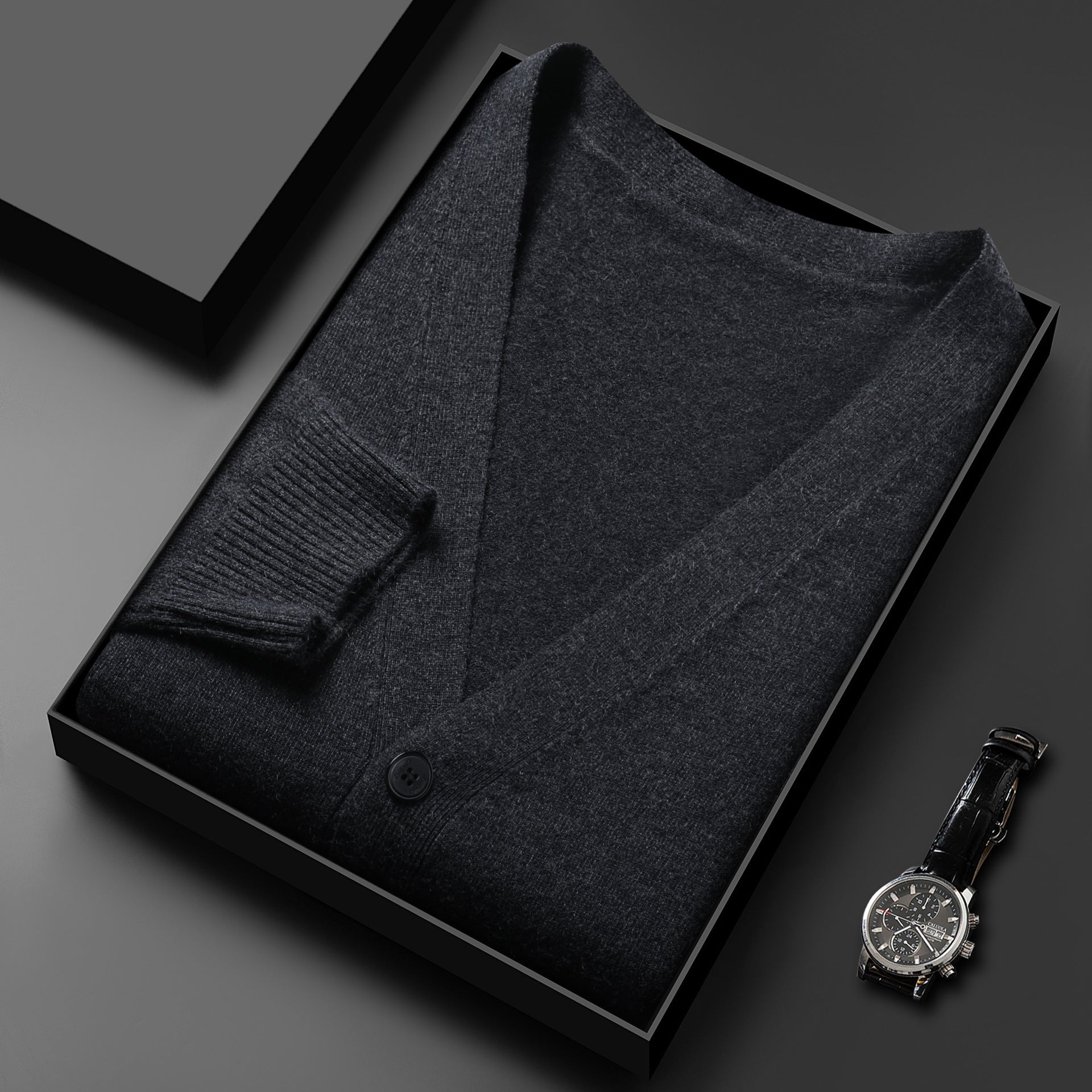 Men's Knitted Cardigan Solid Color And V-neck Basic Style Sweater Coat For Men